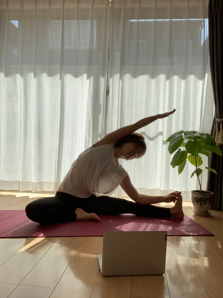 リビングでオンラインヨガをしたり